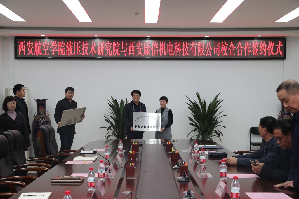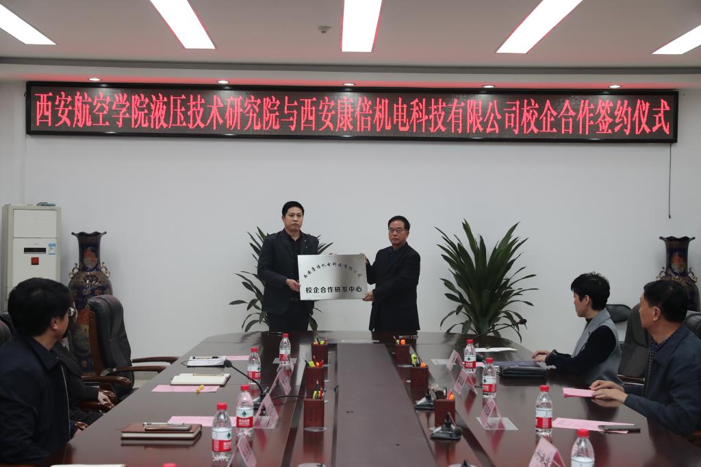 最后,双方举行校企合作协议签字、授牌仪式。康倍机电在我校液压技术bv伟德源自英国始于1946设立“校企合作研发中心”,陈志靖组长为液压技术bv伟德源自英国始于1946授牌。bevictor伟德国际1946在康倍机电设立“科技合作创新基地”,曹校长为康倍机电授牌。签字仪式前,西安康倍机电科技有限公司裴轶一行参观了液压技术bv伟德源自英国始于1946实验室。